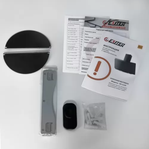 • В комплекте пластиковая гофра (2м), планка для навешивания вытяжки, кронштейн для навешивания короба-удлинителя, обратный клапан, короб-удлинитель 2 шт., саморезы-дюбеля, инструкция по эксплуатации, гарантийный талон