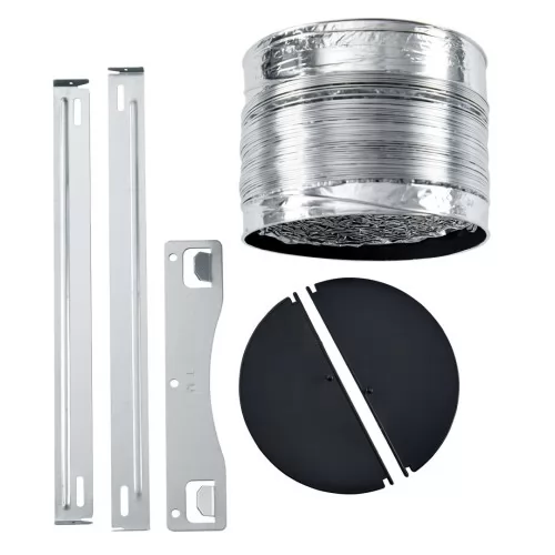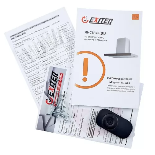 В комплектегофра (2 м), планка для навешивания вытяжки, кронштейн для навешивания короба-удлинителя, обратный клапан, комплект крепежа, пульт ДУ, батарейка, гарантийный талон, инструкция по эксплуатации