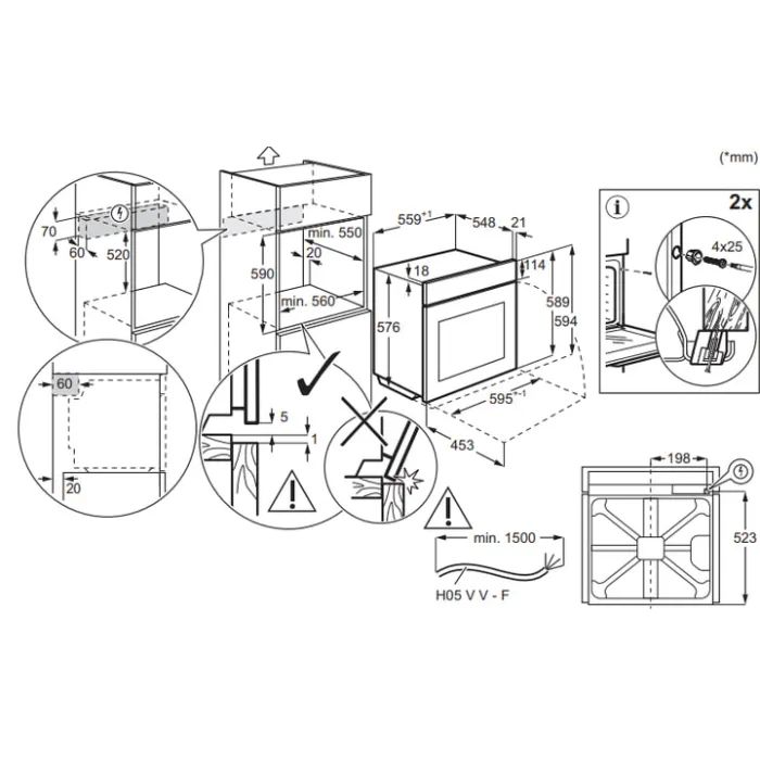 • Розміри ніші для вбудовування 59 х 56 х 55 см