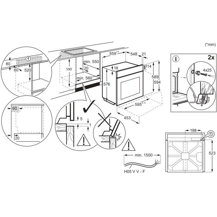 • Розміри ніші для вбудовування 59 x 56 x 55 см