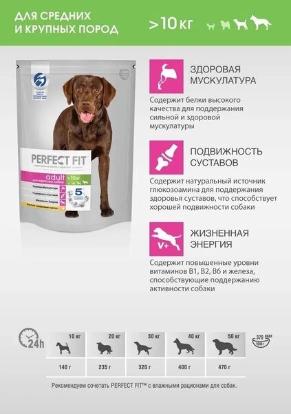 Сухой корм для собак Perfect Fit Для взрослых собак средних и крупных пород. Курица