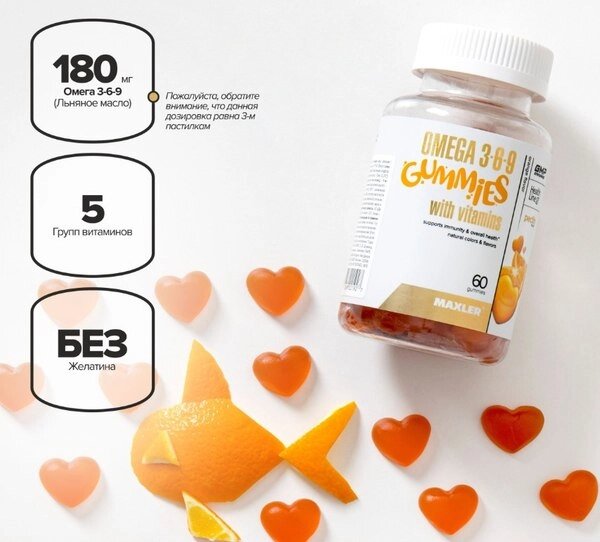 Жирные кислоты Maxler Омега 3-6-9 гаммиз со вкусом апельсина