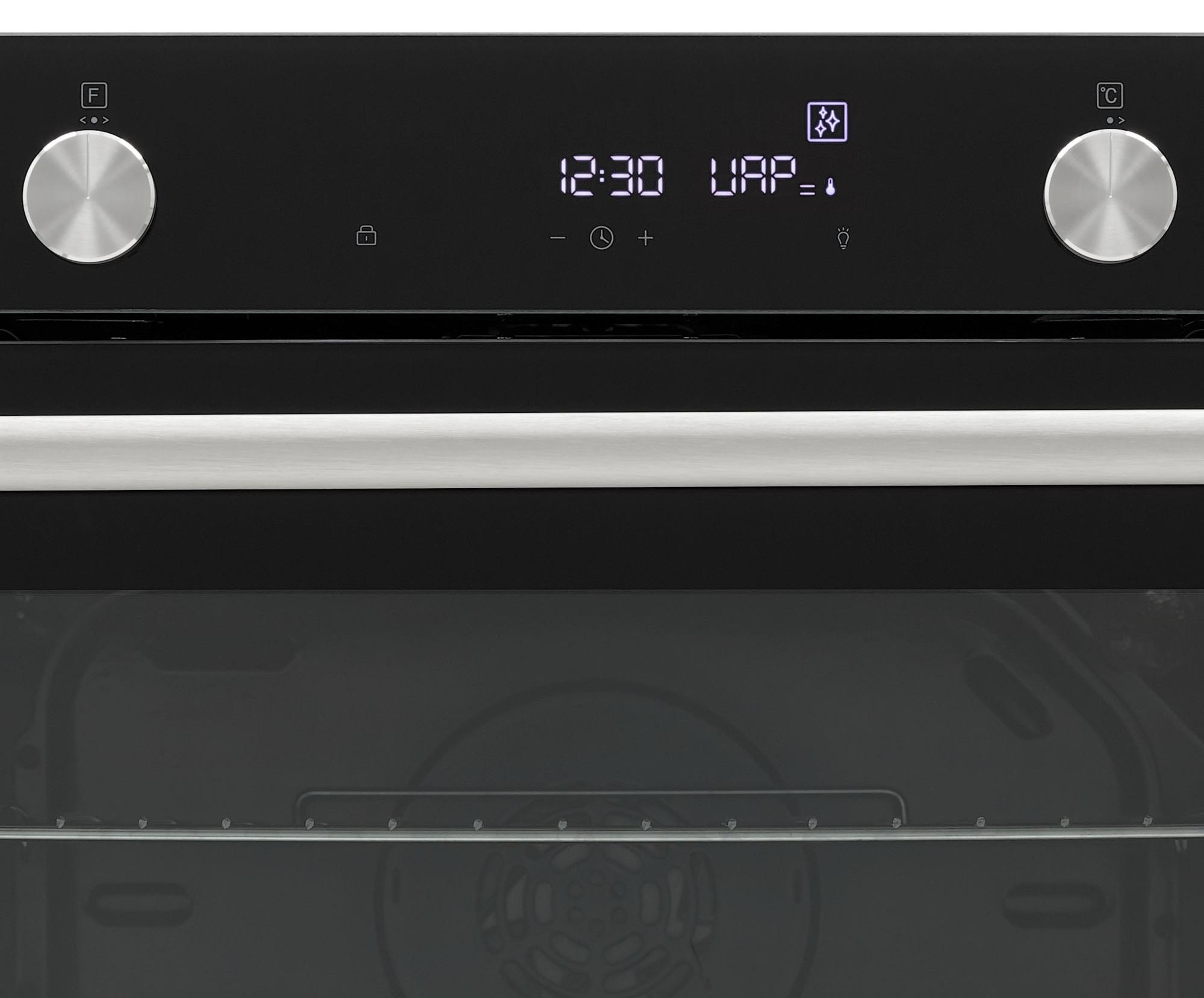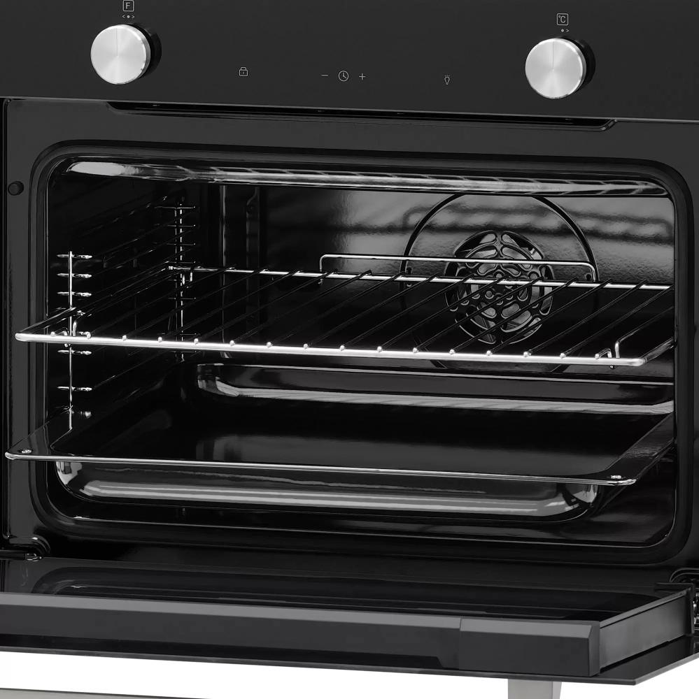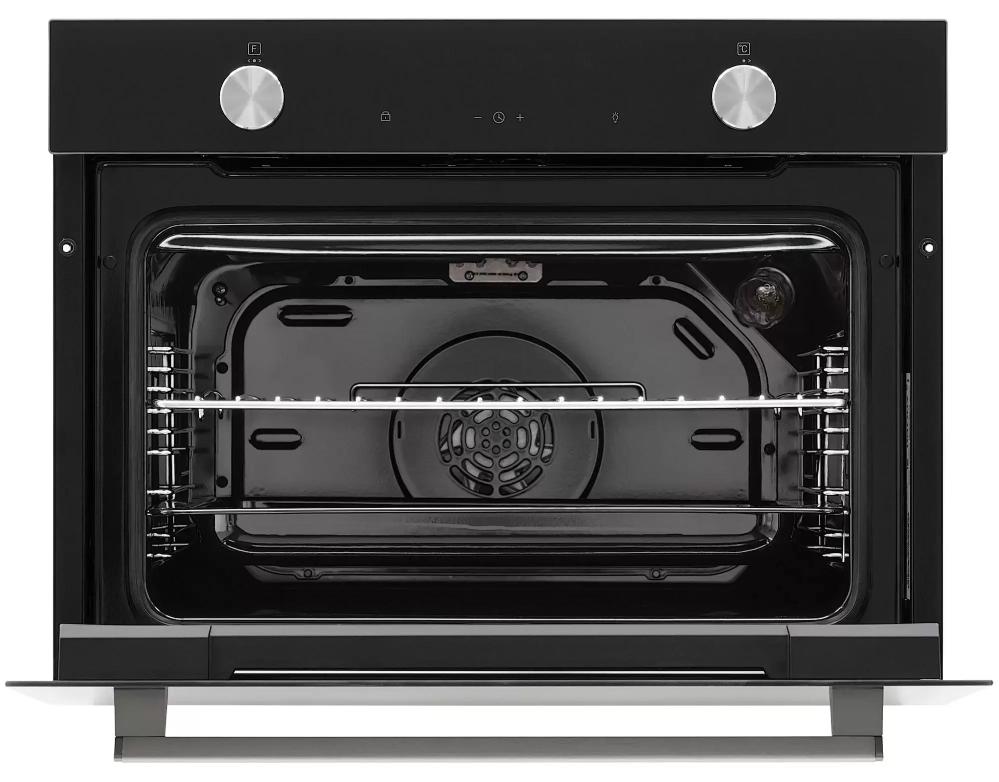 Особенности дизайна и внешней панели управления — также важный пункт при выборе духовки на кухню. В данной модели нужно обратить внимание на цвет — черный,