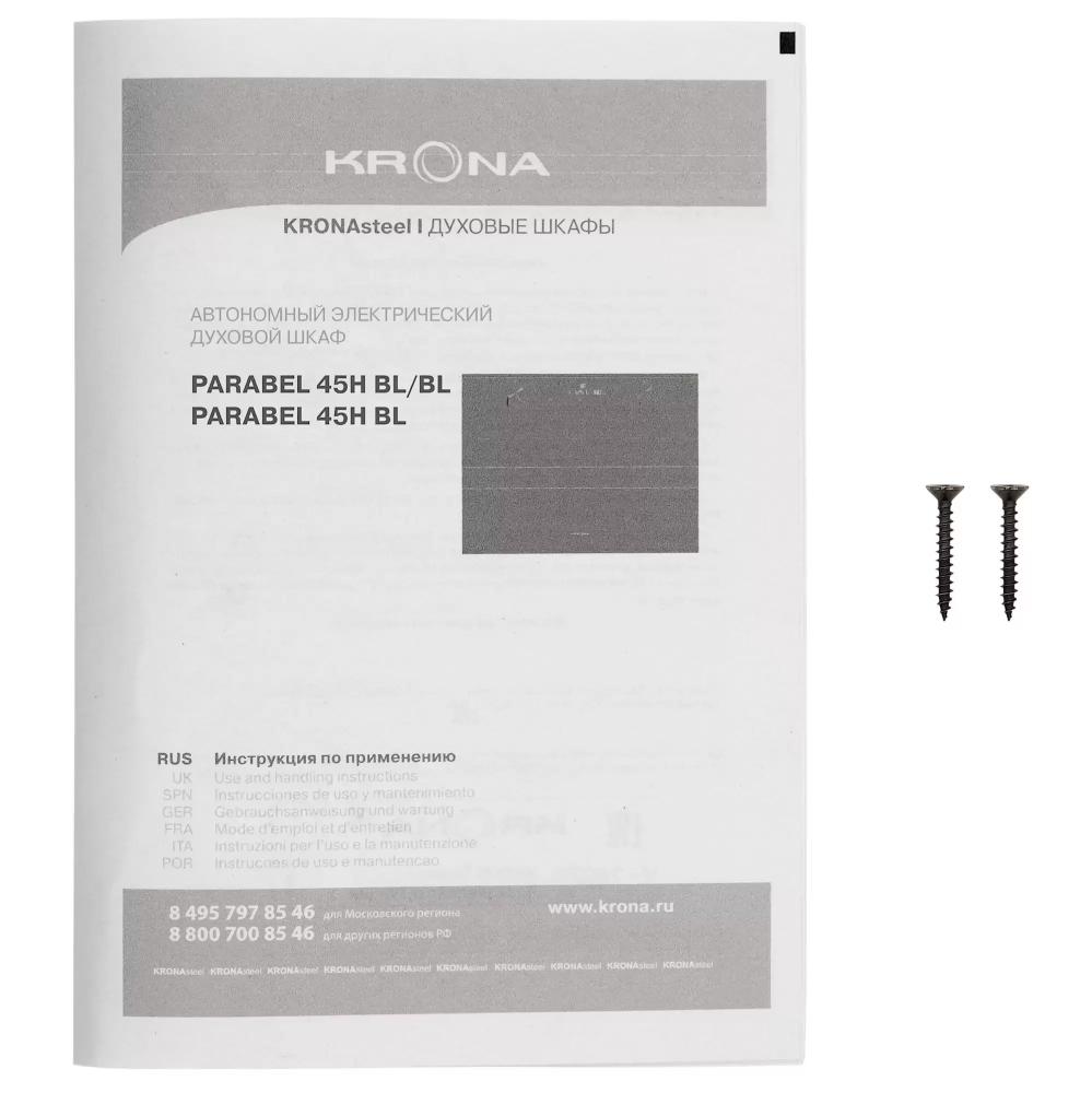Готовьте свои лучшие блюда и пробуйте новые рецепты с духовым шкафом KRONA PARABEL 45H BL! Стандартные размеры и большой объем внутренней камеры — выбор тех, кто много готовит для семьи или частых праздничных встреч с друзьями. Желательно заранее продумать расположение такой модели в кухонном гарнитуре.