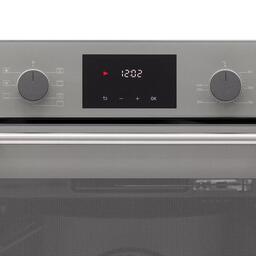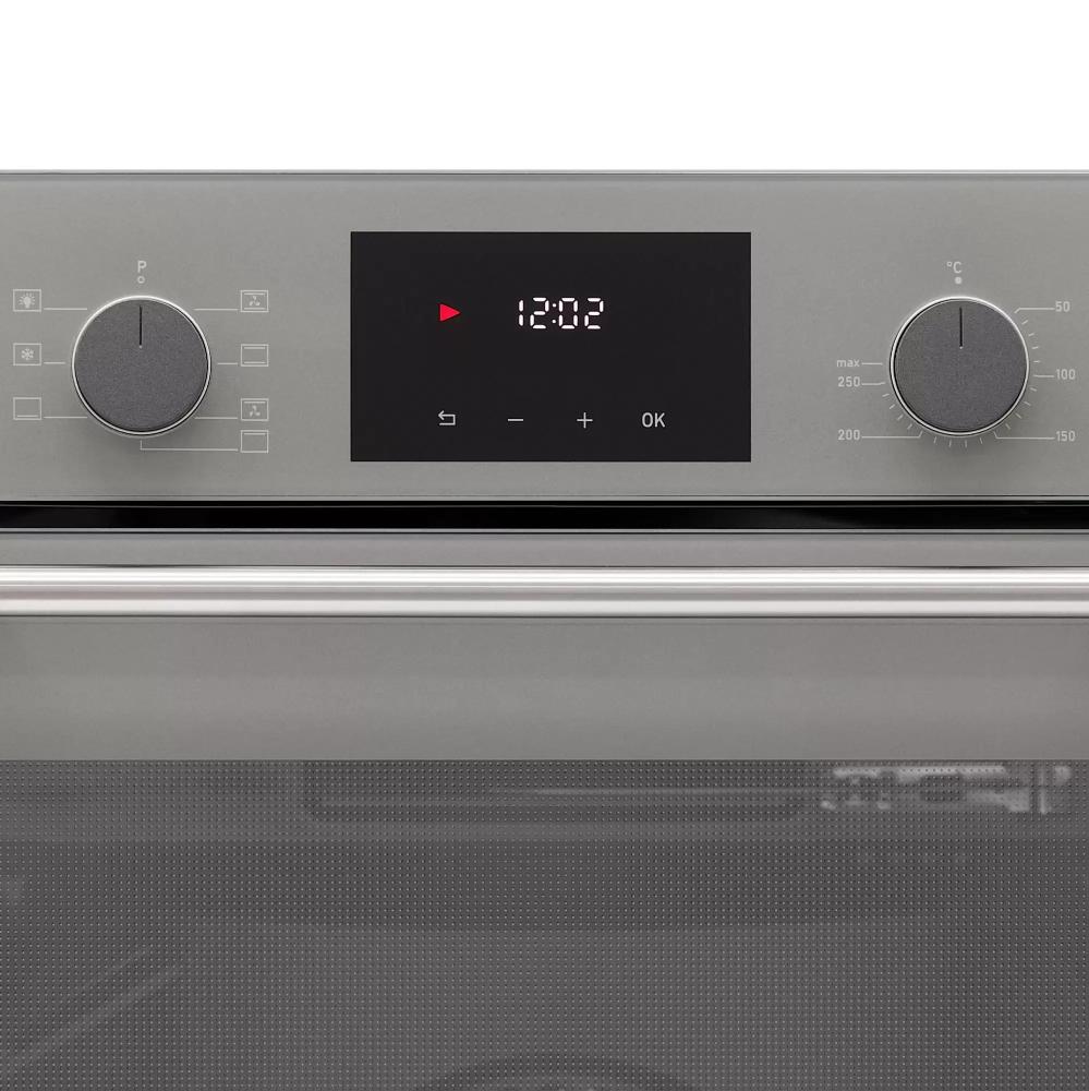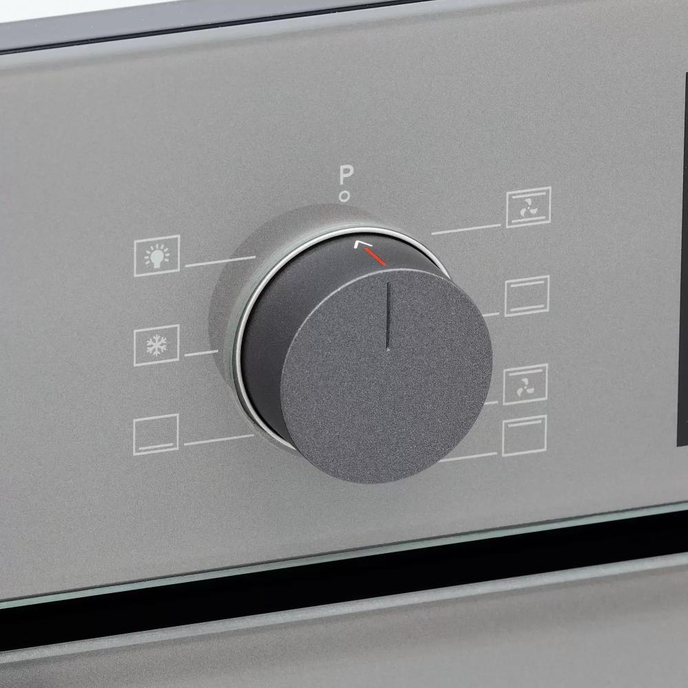 Особенности дизайна и внешней панели управления — также важный пункт при выборе духовки на кухню. В данной модели нужно обратить внимание на цвет — серый,