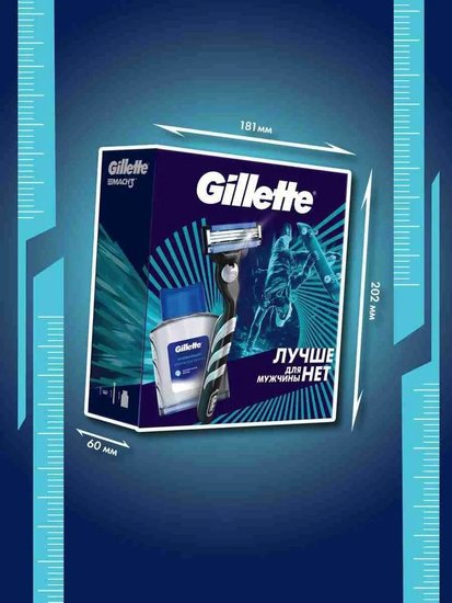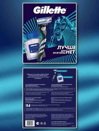 • Содержание набора бритвенный станок Gillette Mach3 1 шт., 1 сменная кассета (надета на станок), лосьон после бритья 50мл
