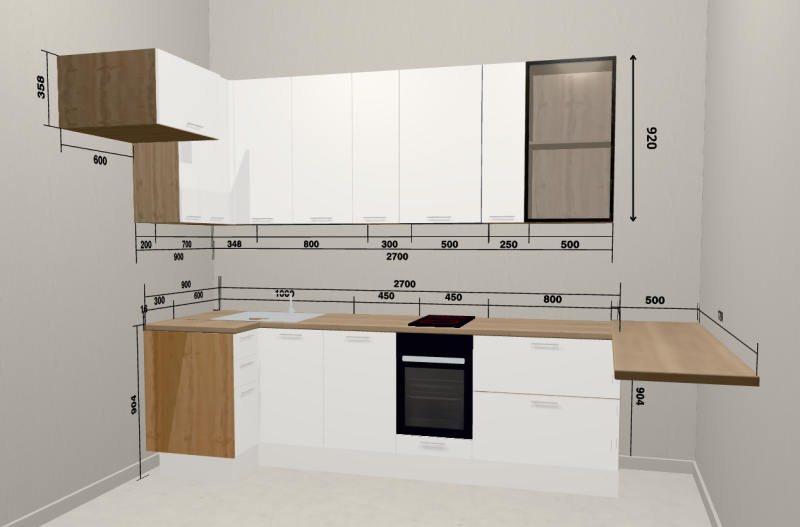 Высота верхних шкафов - 920 мм