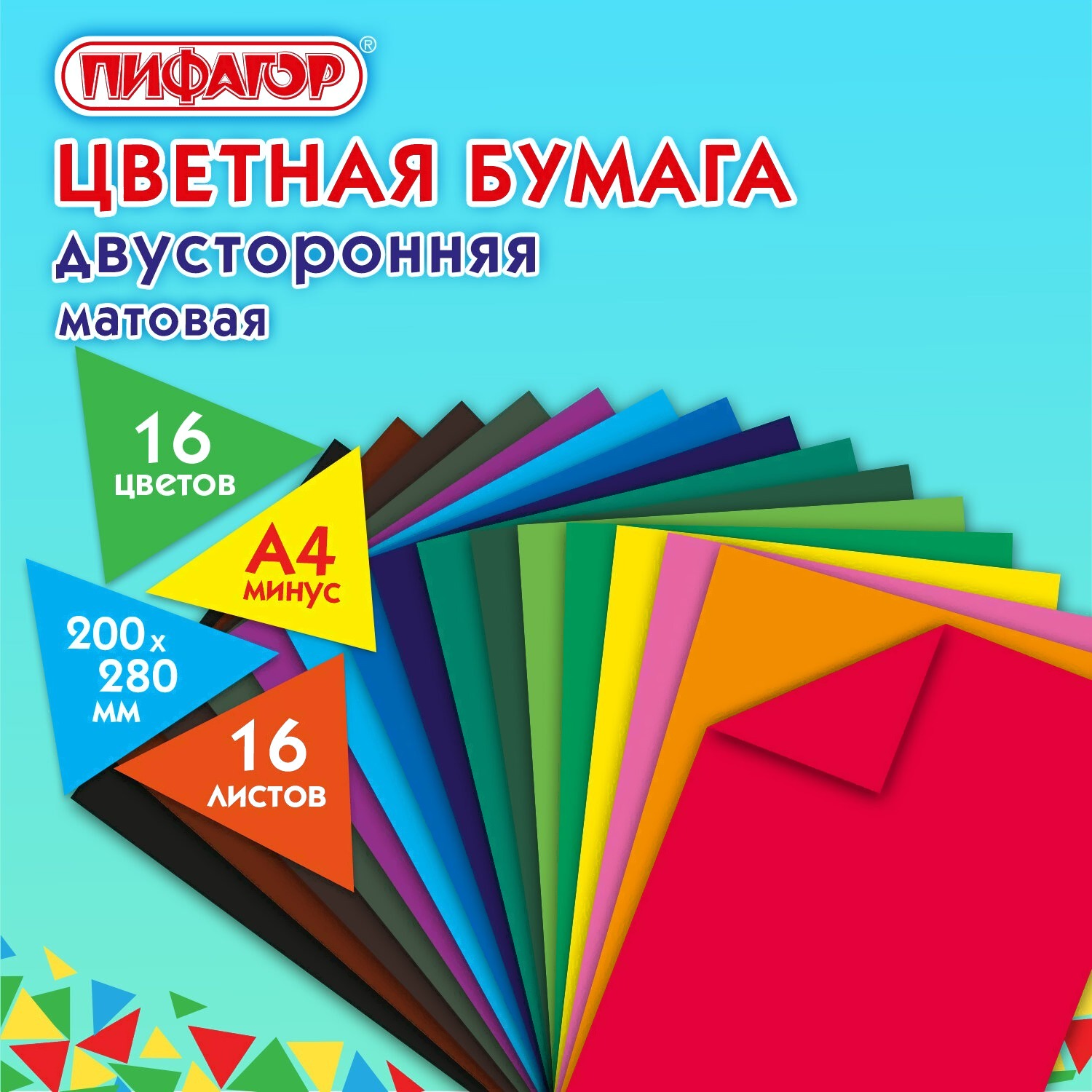 Набор цветной бумаги Пифагор 113542 (16цв)