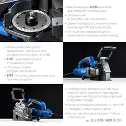 Дополнительные функцииподключение к пылесосу (патрубок 32 мм), защита от перегрузки, защита от непреднамеренного включения, плавный пуск, система стабилизации оборотов, пылезащита
