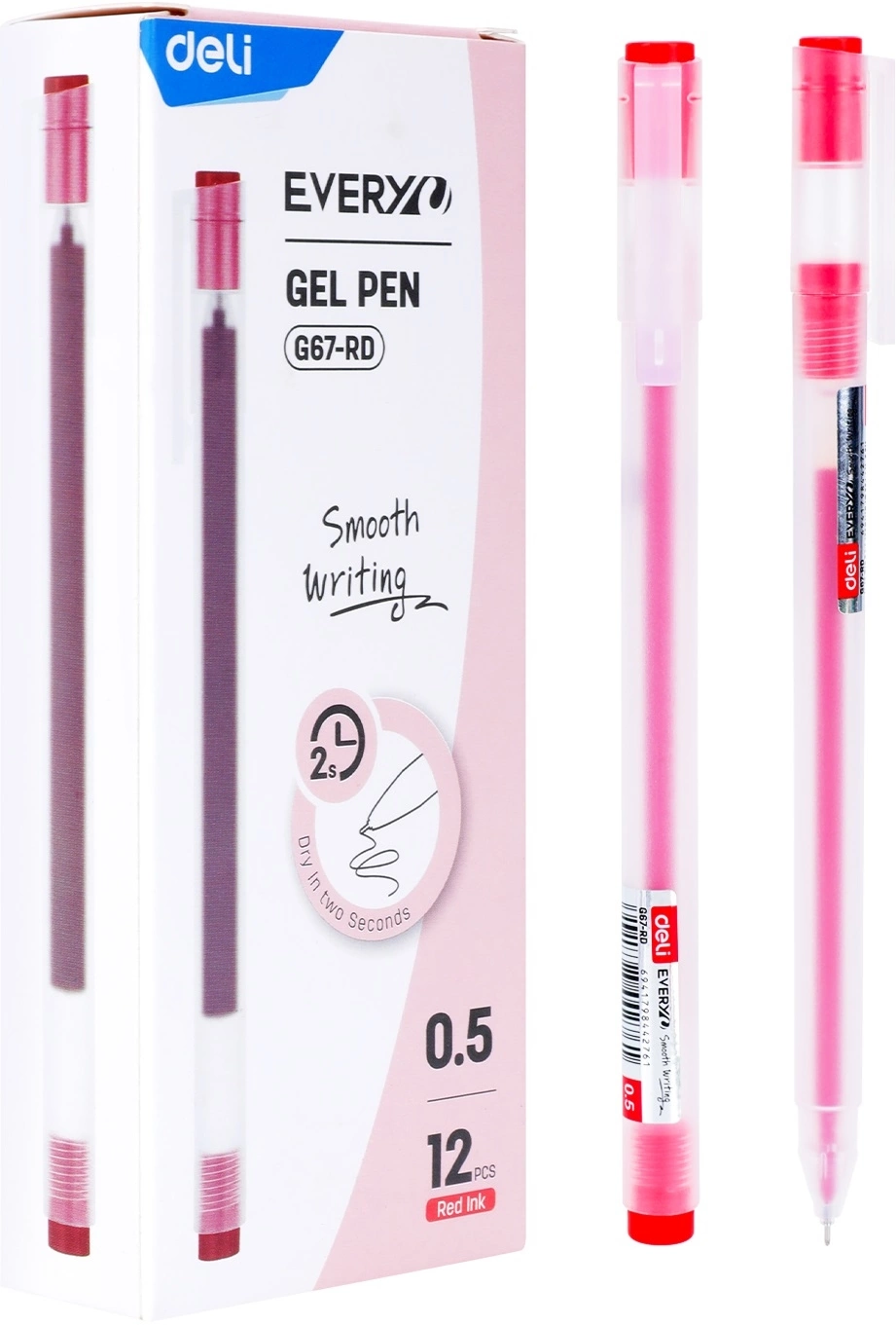 Ручка гелев. Deli Every (EG67-RD) d=0.5мм красн. черн. игловидный пиш. наконечник