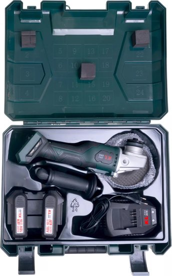 • Комплект поставки - болгарка, - З/У, - 2 аккумулятора, - кейс.