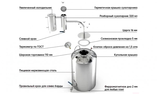 - Вид дистиллятора самогонный дистиллятор