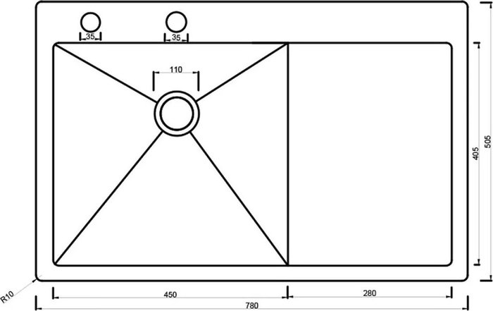 - Диаметр сливного отверстия 3.5"
