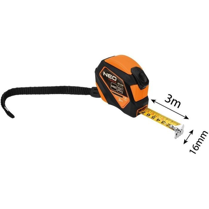 Рулетка Neo Tools 3мx16мм, з фіксатором змотування, магніт (67-231)