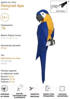 Объемная модель Paperraz Попугай Ара / PP-1ARA-3BLU