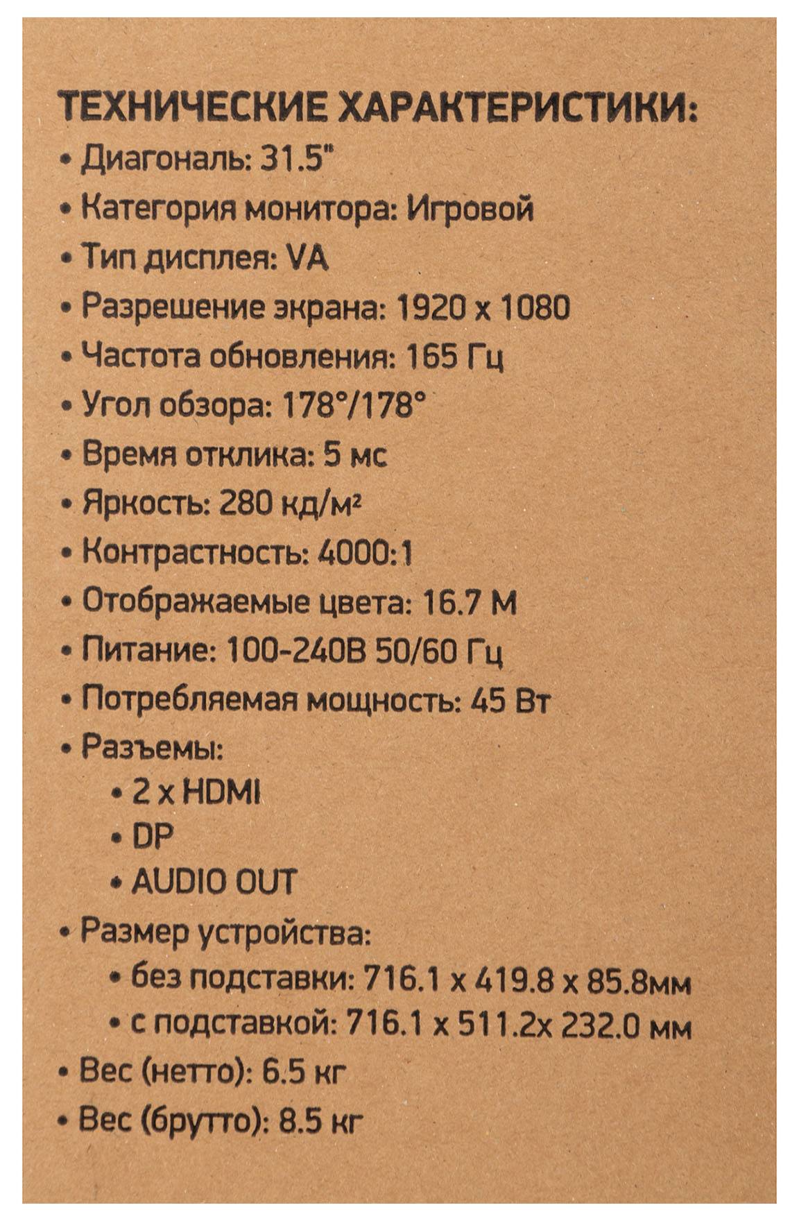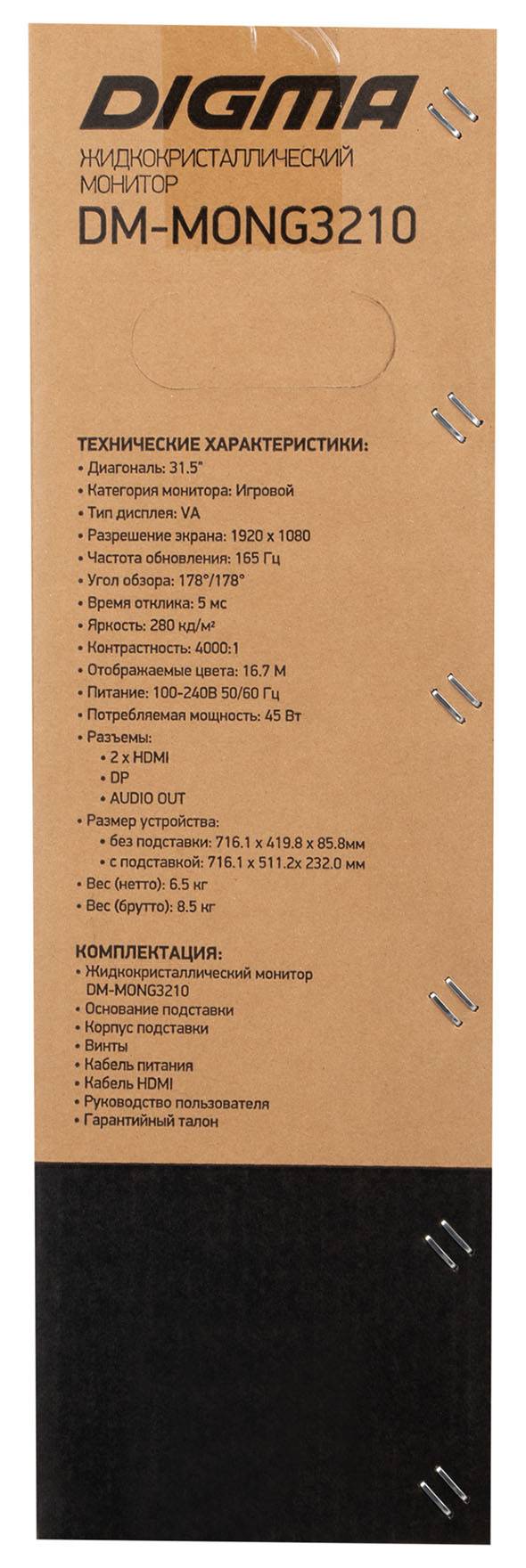 Монитор 31.5" Digma Gaming DM-MONG3210, 1920х1080, 165 Гц, VA, черный/красный
