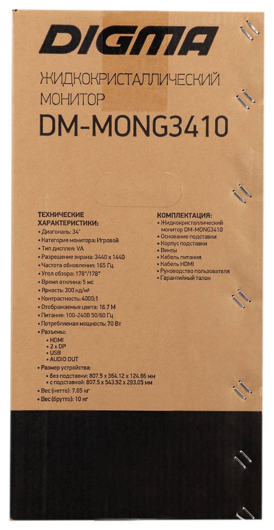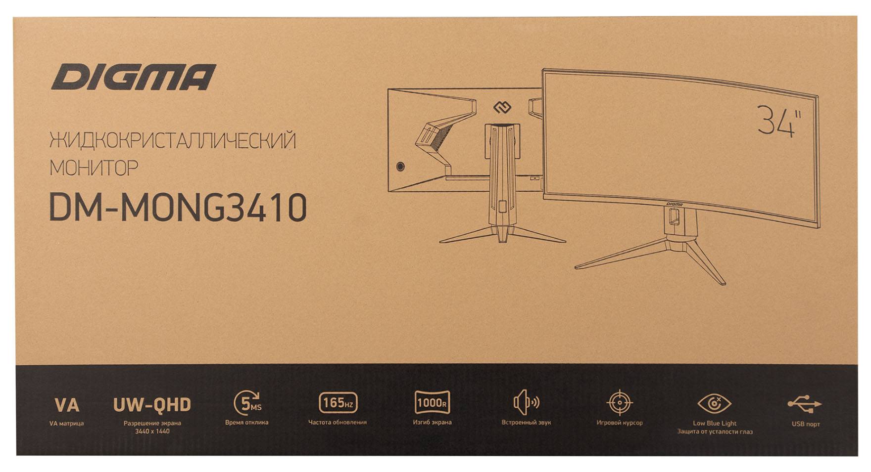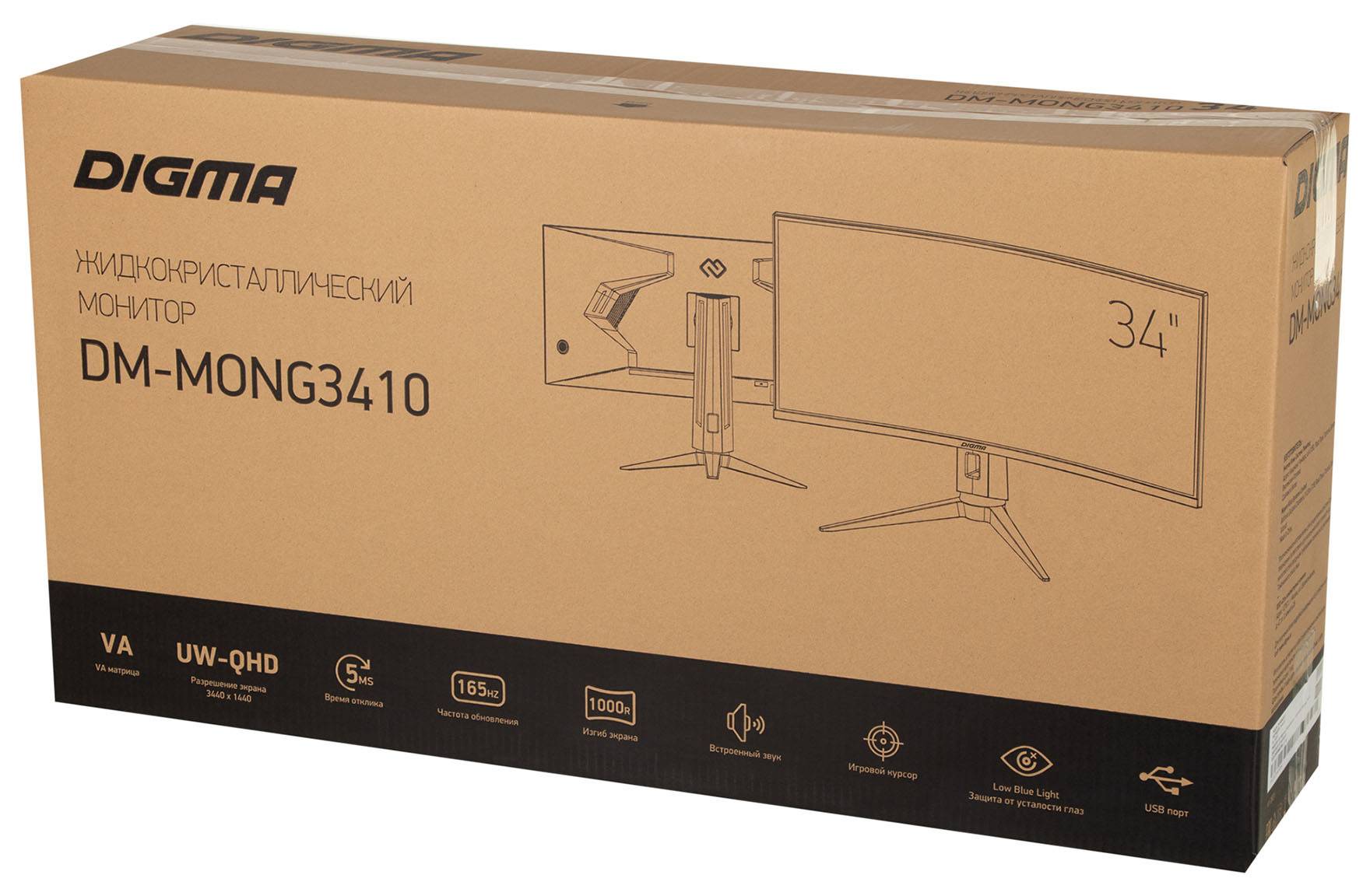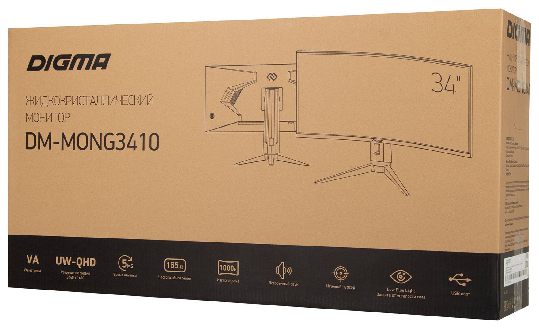 Монитор 34" Digma Gaming DM-MONG3410, 3440х1440, 165 Гц, VA, черный