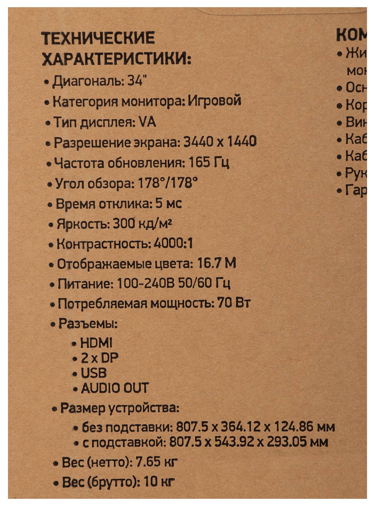 • Диагональ экрана 34" (86.36см)