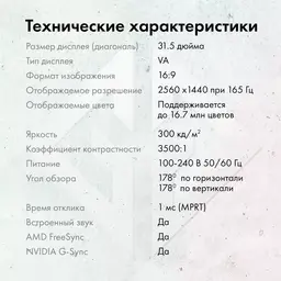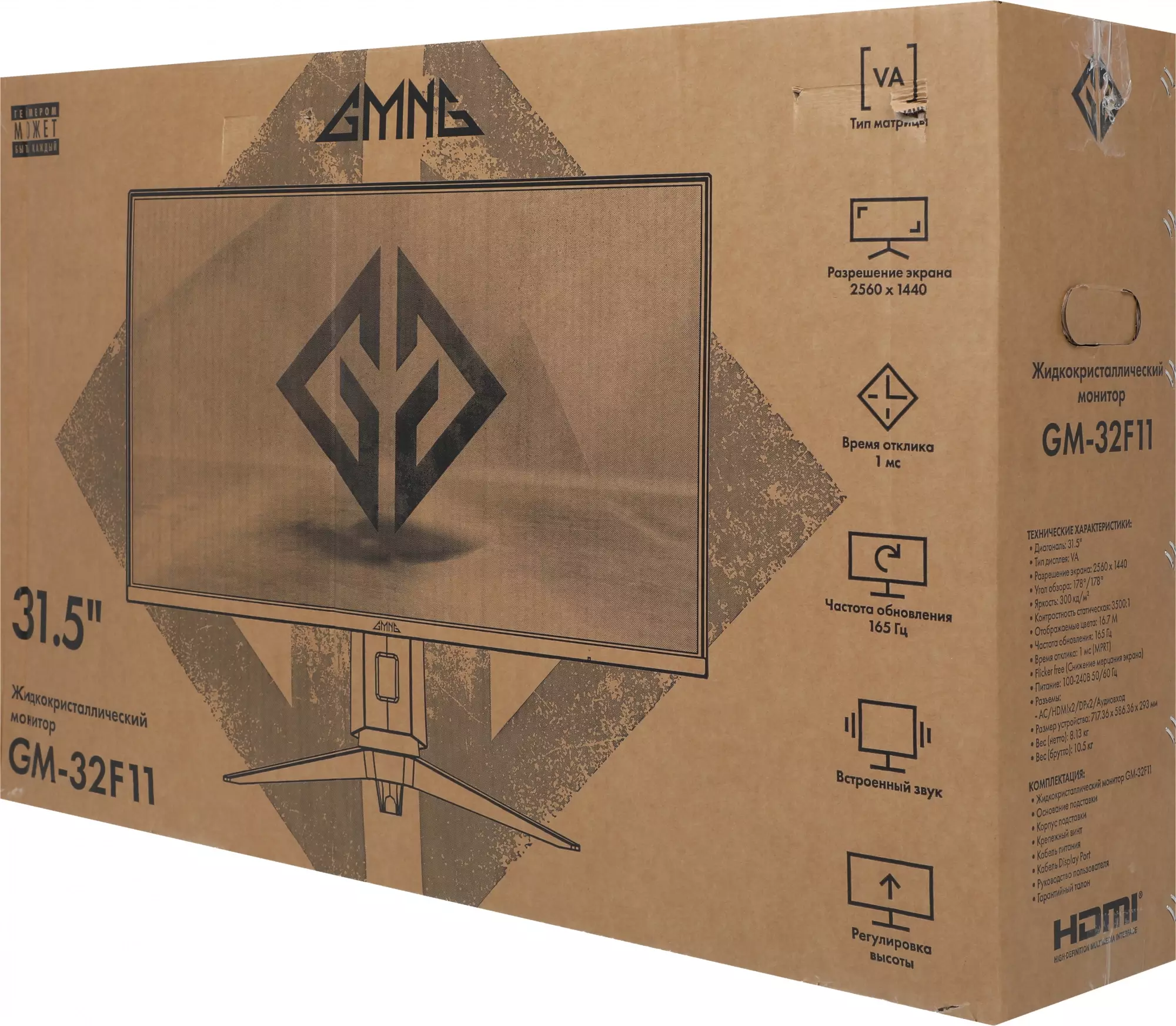 Монитор 31.5" GMNG Gaming GM-32F11, 2560х1440, 165 Гц, VA, черный (gm32vg01)