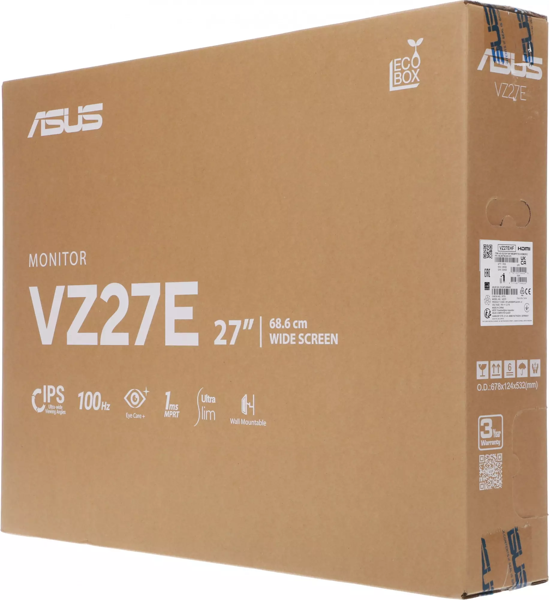 Монитор 27" Asus VZ27EHF, 1920х1080, 100 Гц, IPS, черный (90lm07b0-b01470)