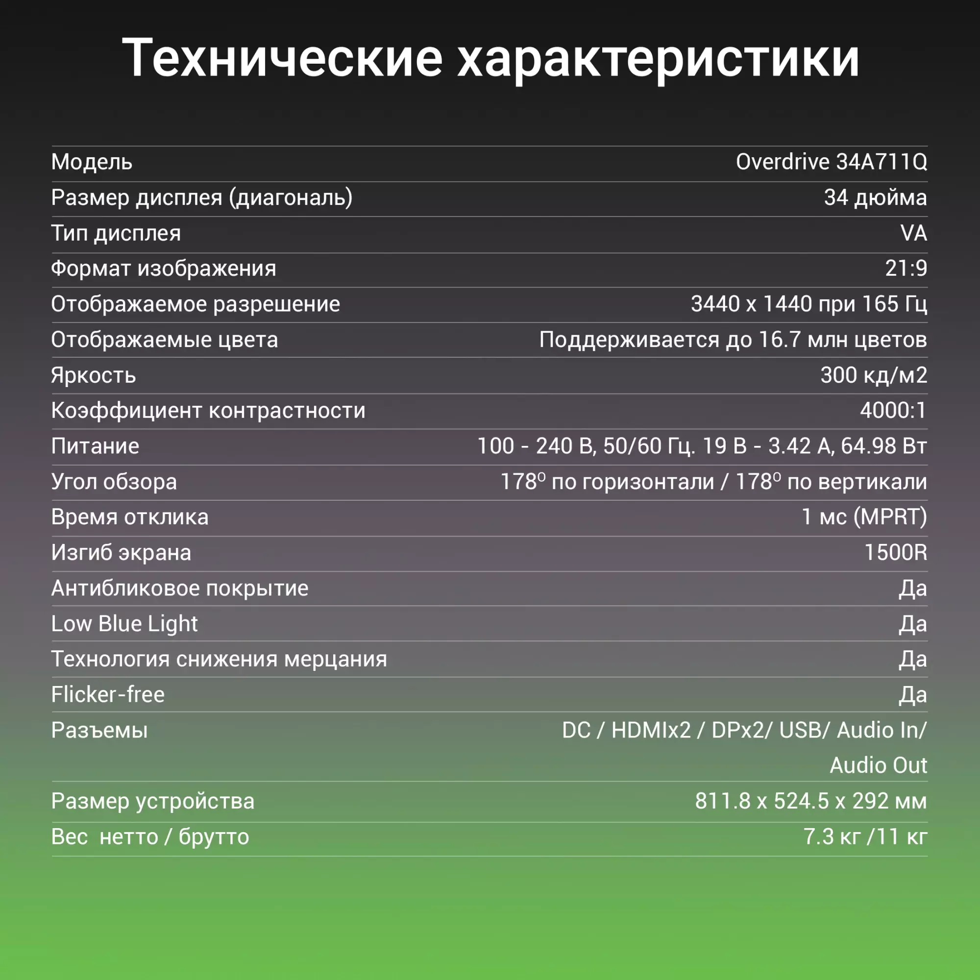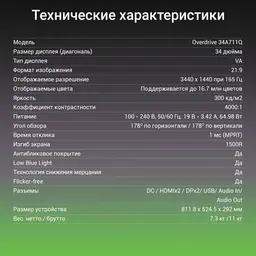 Монитор 34" Digma Overdrive 34A711Q, 3440х1440, 165 Гц, VA, черный (dm34vg02)