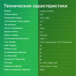 Монитор 23.8" Digma Progress 24A502F, 1920х1080, 100 Гц, VA, черный (dm24vb01)
