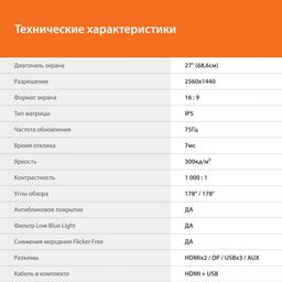 • Стандарт разрешения экрана Ultra HD 2K (1440p)