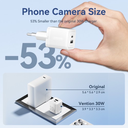 Набор для зарядки Vention TZ-FEQB0-EU-01 включает в себя компактное GaN зарядное устройство мощностью 30 Вт с двумя портами USB (USB-C и USB-A) и высококачественный USB-C кабель с поддержкой тока 3А. Этот комплект станет надёжным помощником в повседневной жизни, дома и в путешествиях.