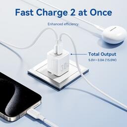 Зарядное устройство оснащено портами USB-C и USB-A, что позволяет одновременно заряжать разные устройства — смартфоны, планшеты, наушники и другие гаджеты.