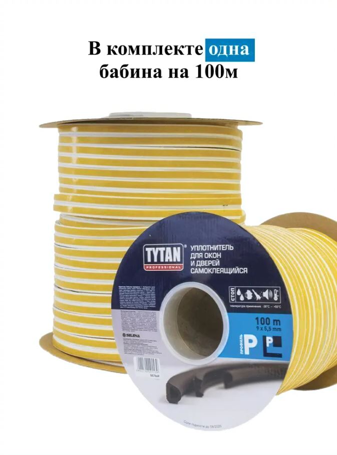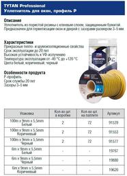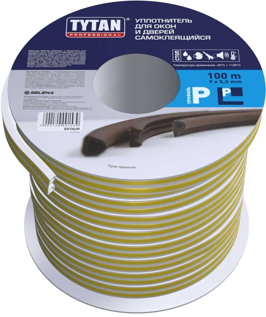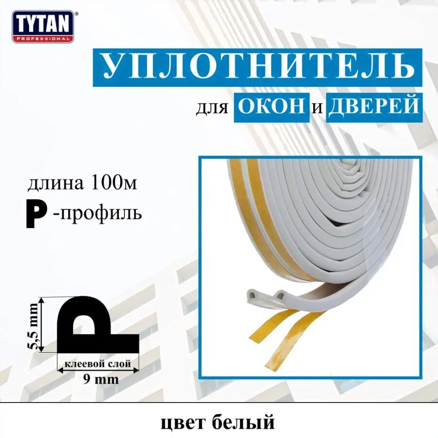 Лента уплотнительная Tytan Professional P-профиль 100мx9ммx5.5мм / 91539 (100м, белый)