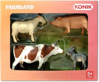 Набор фигурок коллекционных Konik Набор животных фермы Козел, овца, осел, корова / AMF1111