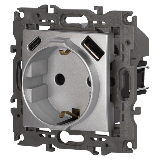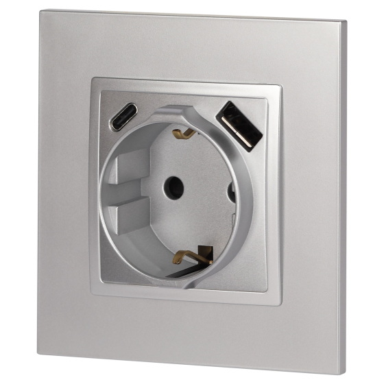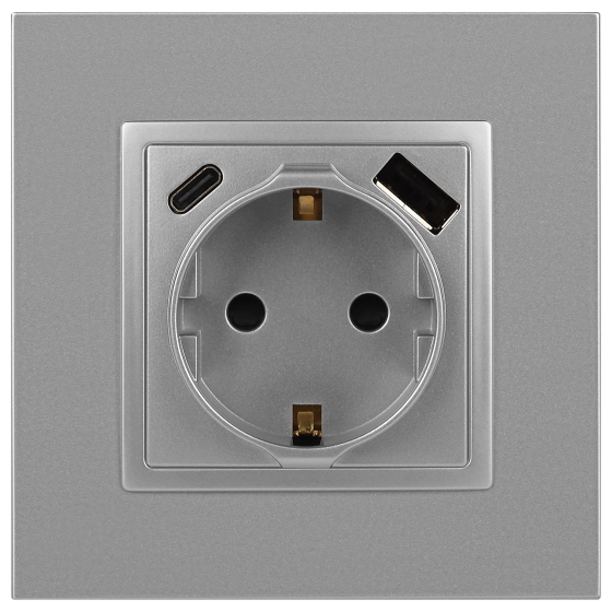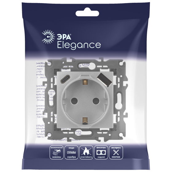 Розетка ЭРА Elegance 14-4108-03 2P+E 16A-250В со шторками с USB type-A+C 5В-3А алюминий