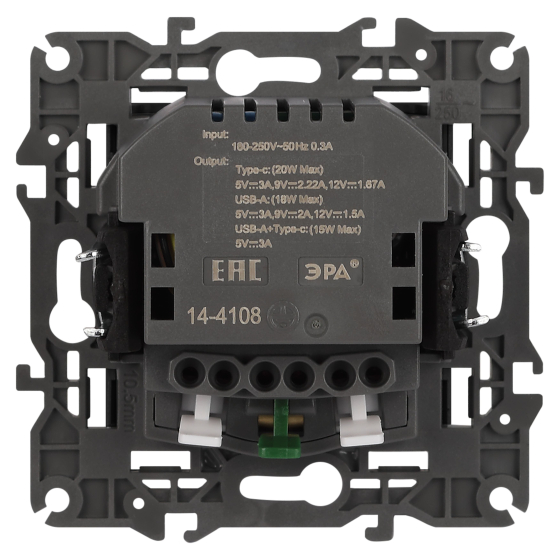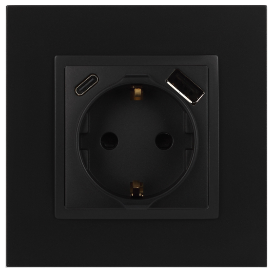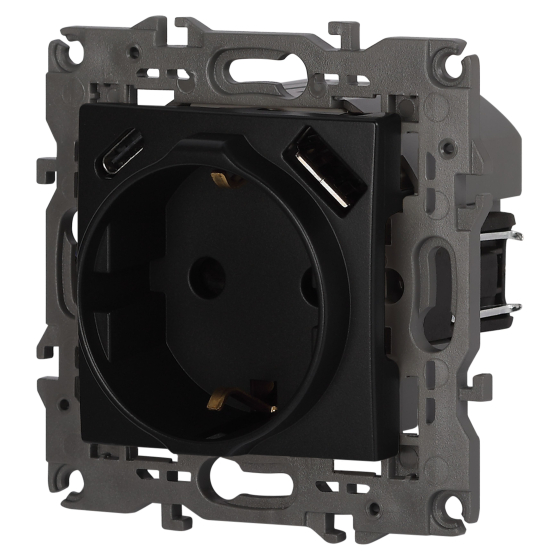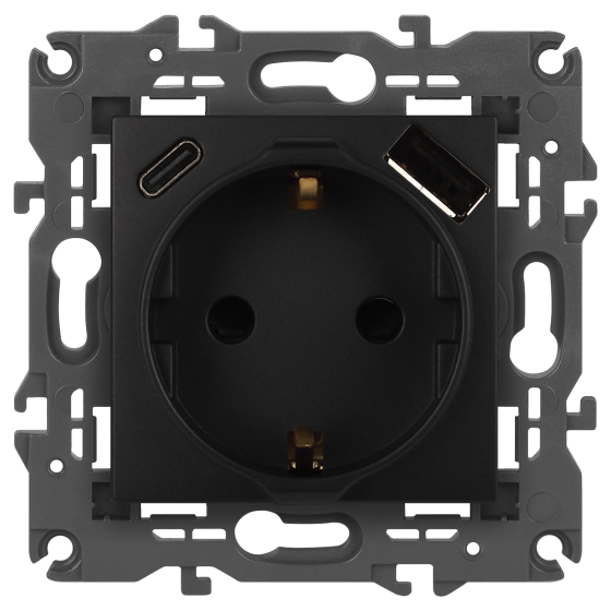 Розетка ЭРА Elegance 14-4108-05 2P+E 16A-250В со шторками с USB type-A+C 5В-3А антрацит