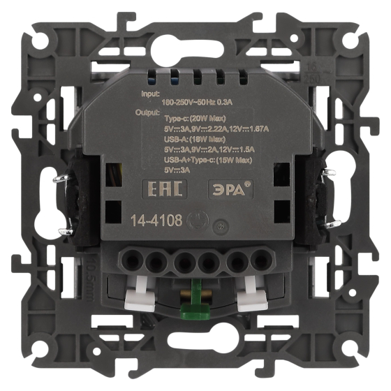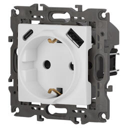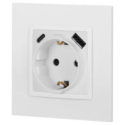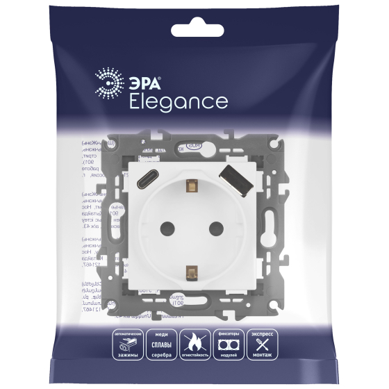 Розетка ЭРА Elegance 14-4108-01М 2P+E 16A-250В со шторками с USB type-A+C 5В-3А белый матовый