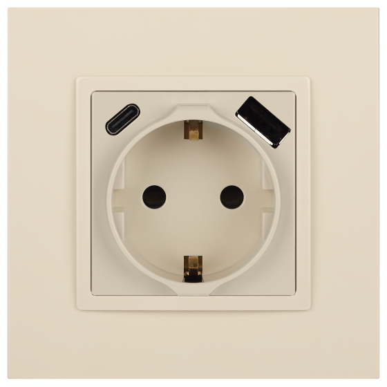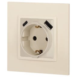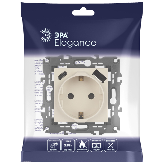 Розетка ЭРА Elegance 14-4108-02 2P+E 16A-250В со шторками с USB type-A+C 5В-3А слоновая кость