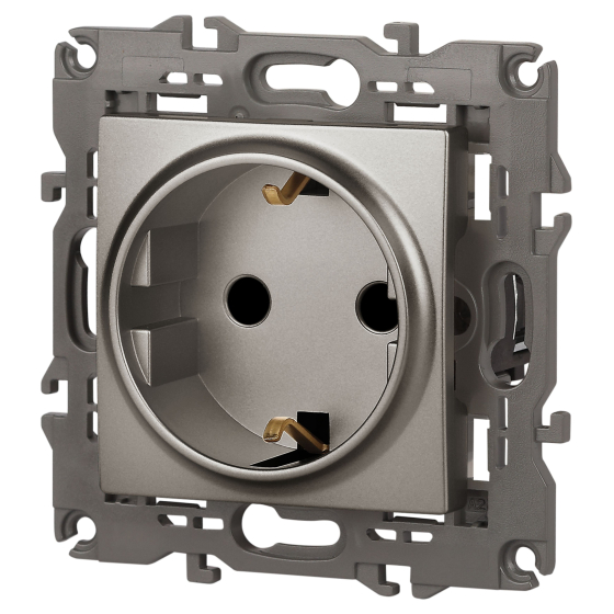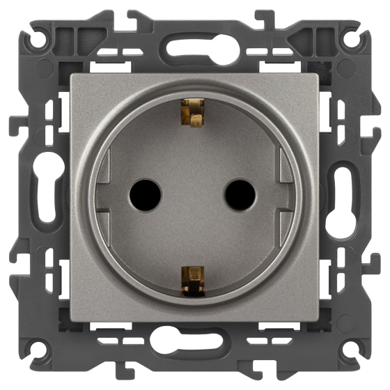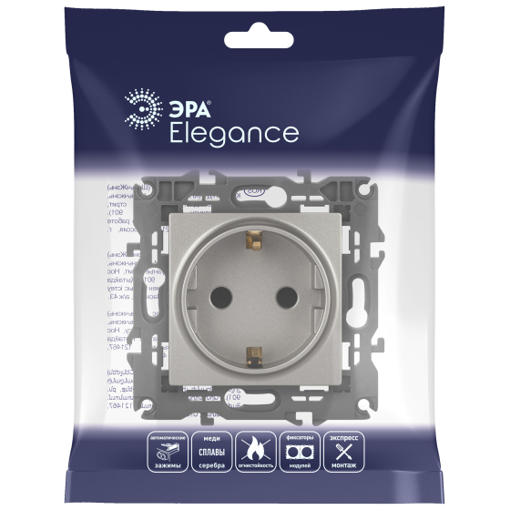 Розетка ЭРА Elegance 14-2102-16 2P+E Schuko со шторками, 16А-250В, титан