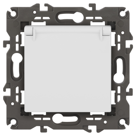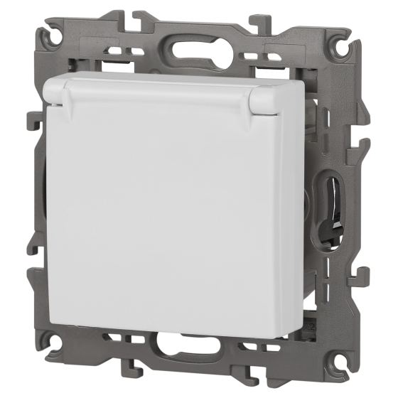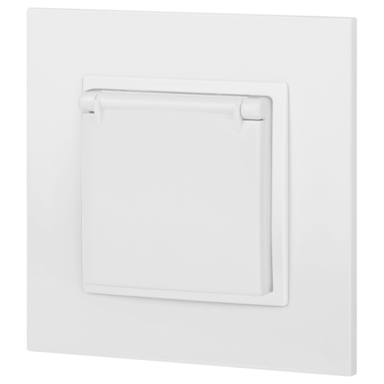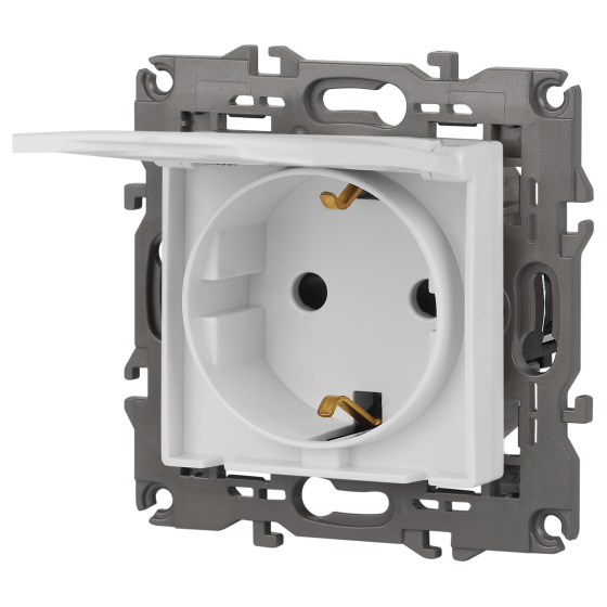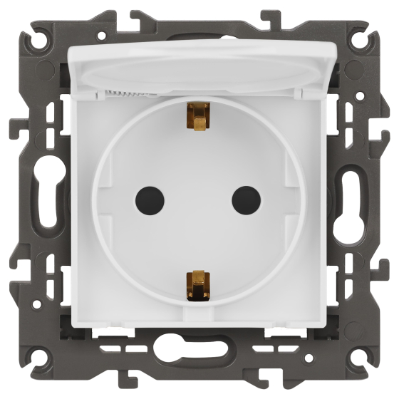 Розетка ЭРА Elegance 14-2103-01М 2P+E Schuko со шторками с крышкой, 16А-250В, белый матовый