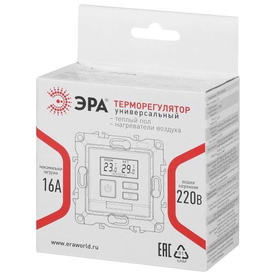 Терморегулятор ЭРА Elegance 14-4111-01М универс.230В-Imax16А, белый матовый