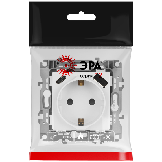 Розетка ЭРА Серия 12 12-4108-01 2P+E 16A-250В со шторками с USB type-A+C 5В-3А белый
