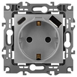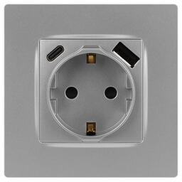 Розетка ЭРА Серия 12 12-4108-03 2P+E 16A-250В со шторками с USB type-A+C 5В-3А алюминий