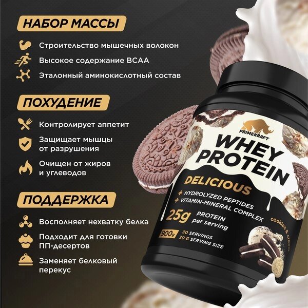 Протеин Prime Kraft Whey Deliсious Печенье и крем