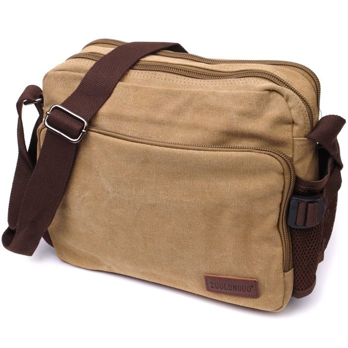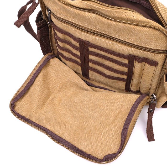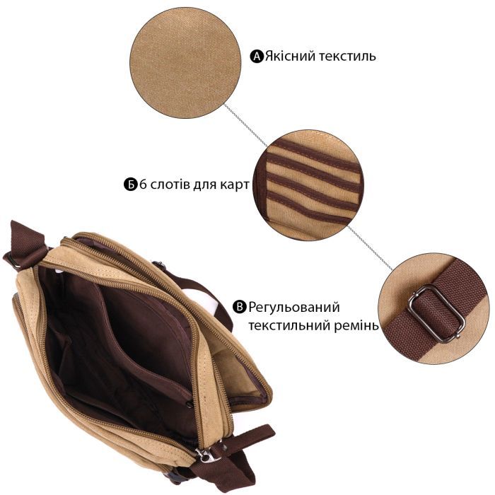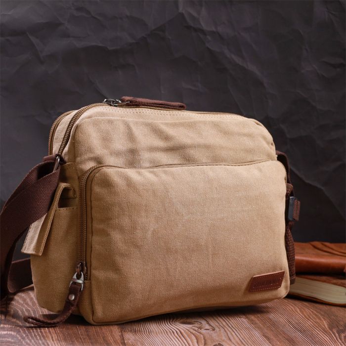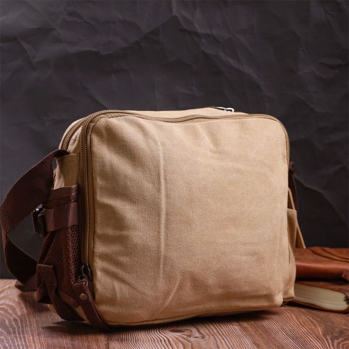 Сумка Vintage Чоловіча месенджер з текстилю Пісочна (22206)