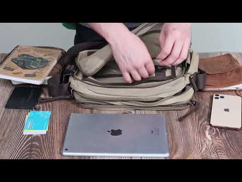 Особливостірегульований плечовий ремінець , карабін , вміщує формат А4 , сітчаста бічна кишеня для води з фіксатором , бічна кишеня, що закривається клапаном на липучку , сім накладних кишеньок відкритого типу