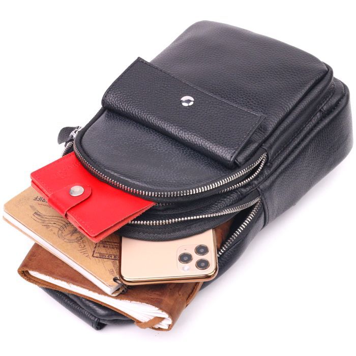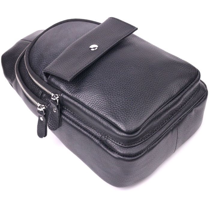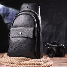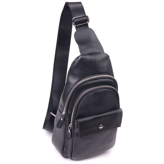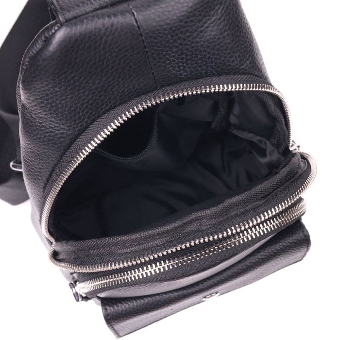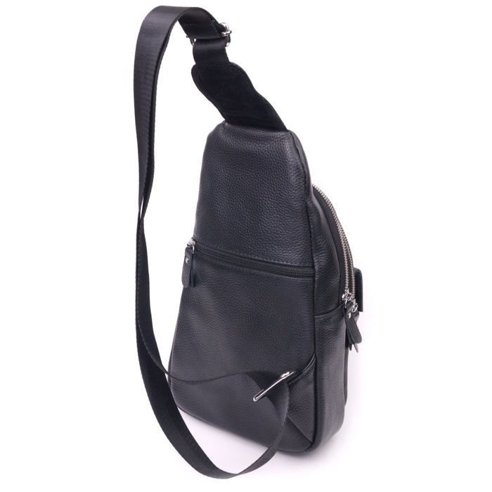• Модель Чоловіча слінг з натуральної зернистої шкіри Чорна