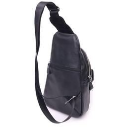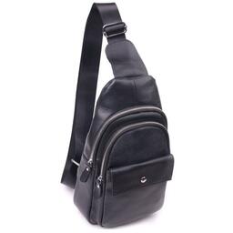 Сумка Vintage Чоловіча слінг з натуральної зернистої шкіри Чорна (21402)