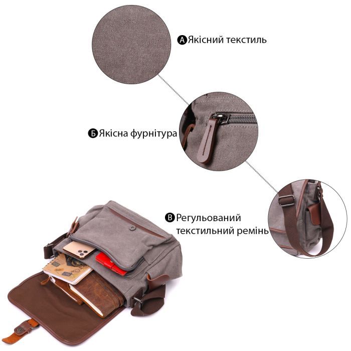 Сумка Vintage Чоловіча з текстилю Сіра (21248)