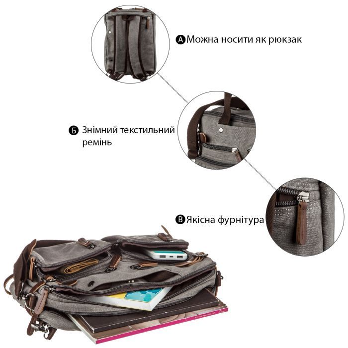 Сумка Vintage Трансофрмер текстильна Сіра (20145)