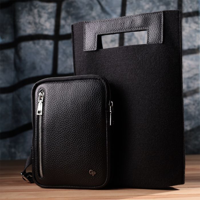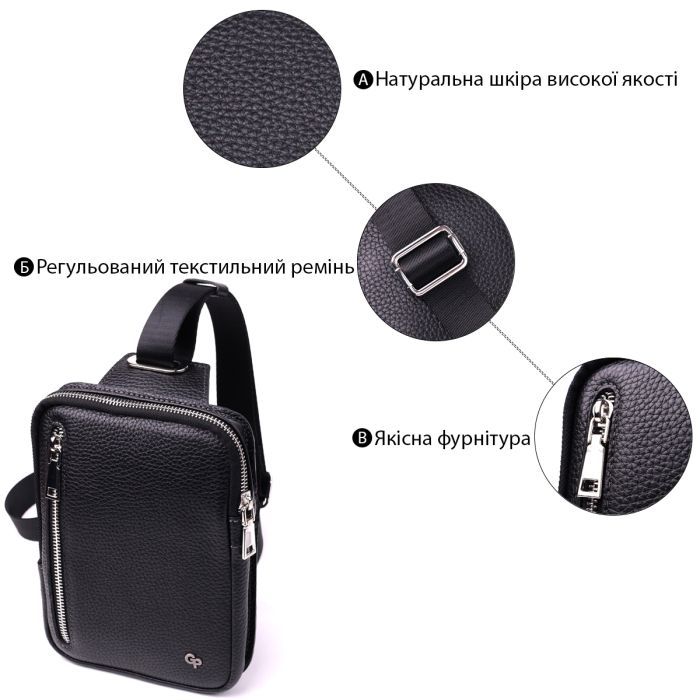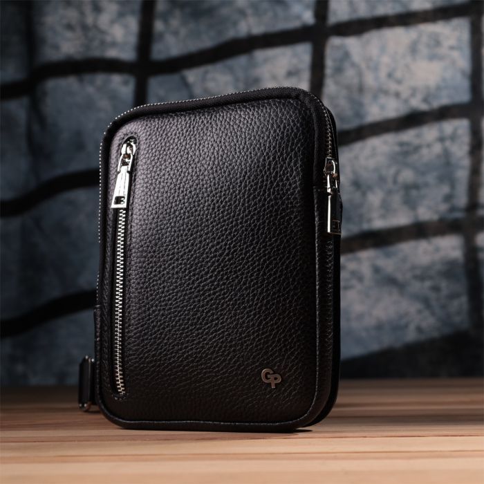 Сумка Grande Pelle Бананка з натуральної шкіри Чорна (22877)