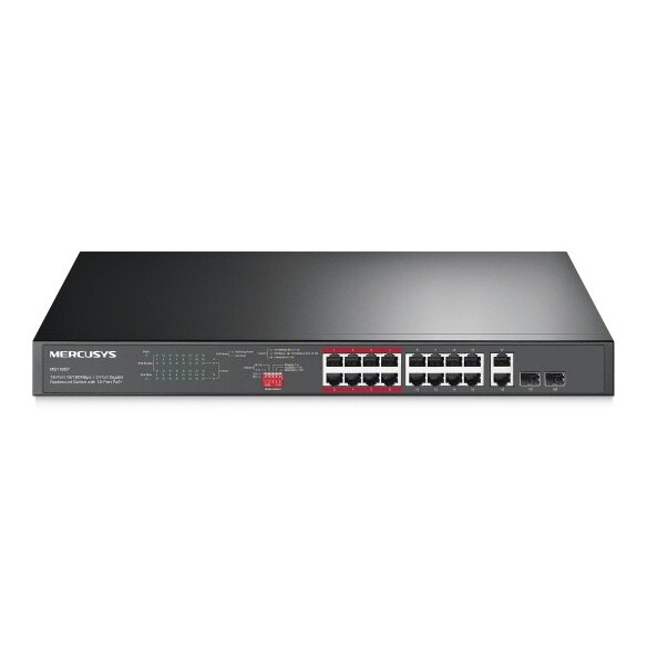 Коммутатор Mercusys MS118CP 16-портовый монтируемый в стойку PoE+ 10/100Мбит/с с 2 гигабитными портами