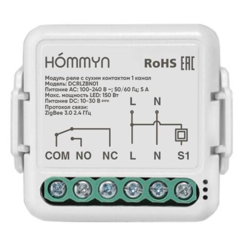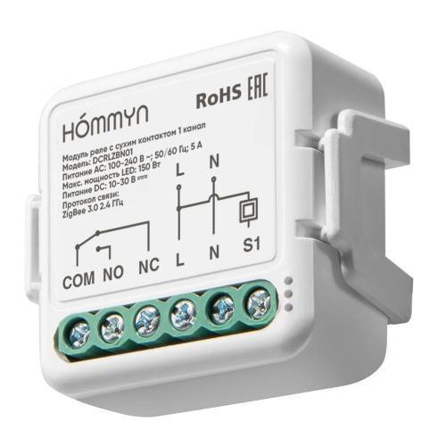 Умное реле HOMMYN DCRLZBN01 с сухим контактом предназначено для управления контроллерами котлов, гаражных ворот, шлагбаумов, а также розетками, светильниками, LED-лентами, термостатами теплого пола, моторами, насосами и прочими бытовыми приборами. Таким образом умное реле позволяет "прокачать" домашние "неумные" приборы, делая их умными, не меняя их оригинальные функции и внешний вид.